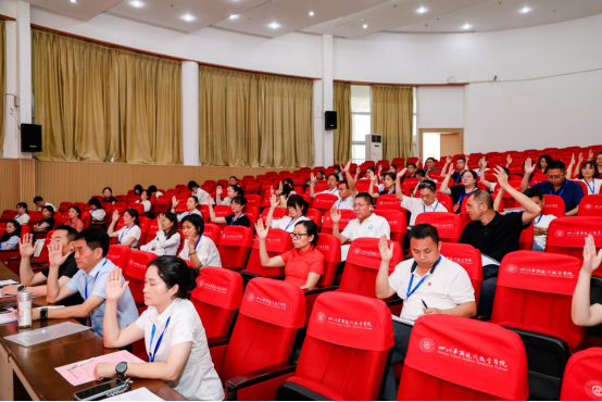最后,教代会代表张丽妍向全院教职工发出倡议:大广大教职工要紧密地团结在以习近平同志为核心的党中央周围,在四川开放大学和学院党委的坚强领导下,以更加饱满的精神、更加昂扬的状态、更加奋进的姿态,抢抓机遇、乘势而上、拼搏奉献,向着“全面建设特色鲜明、优势突出的高水平职业院校”的目标阔步前进,以优异成绩向中华人民共和国成立75周年献礼!