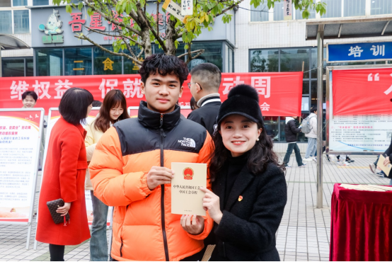 为了让工会会员充分了解工会组织、认识中国工会的性质、作用、地位以及社会职能,帮助即将迈入社会的大学生树立维权意识和加入工会组织的意识,四川开放大学工会联合四川华新现代职业学院工会于2023年12月1日至2023年12月8日在华新高职院校园内开展 “入工会、维权益、促就业”工会知识进校园系列活动。四川开放大学工会副主席孙燕、工会与离退休工作处何爱民、张好好、阳愉,四川华新现代职业学院工会主席邓忠、工会办公室主任李佳薇等工会代表和学院相关部门处室领导参加活动。