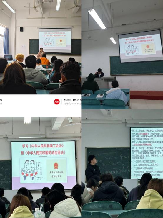 图3为:四川华新现代职业学院工会主席邓忠为学生做工会普法宣传