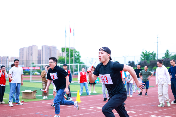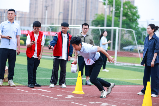 第一项进行的赛项是30米男女混合迎面接力。比赛在发令枪声中拉开了序幕,这项比赛共有9队共108人参加。每位参赛的教职工脸上都闪现着必胜的光芒,他们手持接力棒,个个象一只猎豹,卯足了劲冲在跑道上。接力比赛,是速度的较量,更是团队协作的完美体现。每一次的交接棒都凝聚着团队的信任与默契,让现场加油助威的教职工们感受到了运动的无限激情。经过激烈角逐,马克思主义学院+图书信息+艺术学院队、学工学生团委+教务队、组织人事教师+智能建造与制造学院队、宣传统战纪委办工会+招就+财务资产队分别获得了前4名。