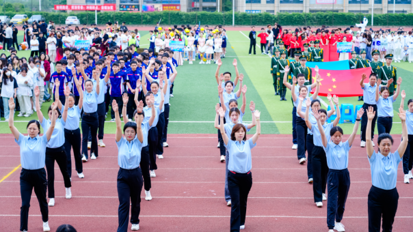 比赛开始前,教职工代表进行了第八套广播体操展演。教职工们身着统一服装,脸上洋溢自信笑容,迈着整齐步伐进入操场。伴随着第八套广播体操熟悉的旋律,全体教职工精神饱满,以整齐划一的动作展示伸展运动、扩胸运动、踢腿运动,跳跃运动……每一个动作都刚劲有力!广播体操不仅锻炼了教职工的协调能力,缓解教职工久坐的压力,还进一步展现了新时代教育工作者的蓬勃朝气!