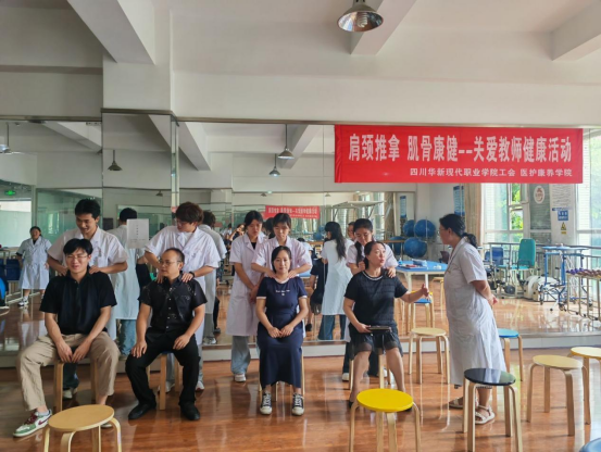 在第41个教师节即将温馨启幕之际,为驱散老师们日常工作的疲惫、舒缓生活的重重压力,全方位提升教师的生活品质,深度增强教师的工作幸福感,学院工会携手医护康养学院,于9月9日中午在学院知行楼二楼医护康养学院实训室H2 - 9开展了一场“肩颈推拿 肌骨康健——关爱教师健康活动”教师节主题活动,旨在让教师们在欢庆节日的愉悦氛围中,尽情享受身心的深度放松与极致舒适。
