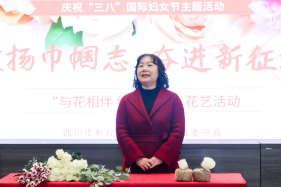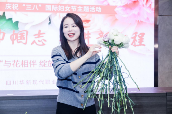 春风拂面,百花飘香。为营造关心关爱女职工成长的良好氛围,展示女职工积极进取的精神风貌。值此第114个“三八”国际劳动妇女节之际,四川华新现代职业学院工会于3月8日上午在明德楼602会议室举办了以“激扬巾帼志 奋进新征程”为主题的“与花相伴 绽放芳华”女职工花艺活动。本次活动吸引了来自全院19个工会小组的30位女职工代表参加,学院领导班子为女职工送上节日祝福。学院工会主席邓忠为本次活动致辞并参加活动。