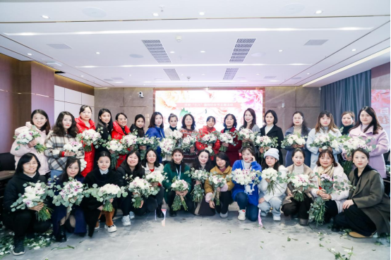 图为:“与花相伴 绽放芳华”女职工花艺活动合影