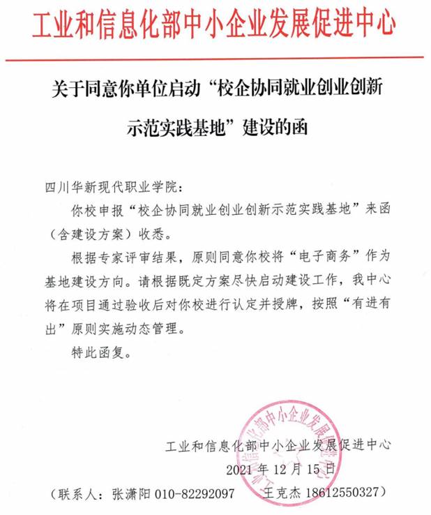 日前,工业和信息化部中小企业发展促进中心发函批准我院启动“校企协同就业创业创新示范实践基地”建设,并纳入全国首批“示范基地”建设单位。