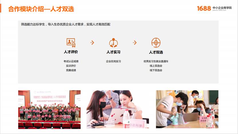 基于集团“春雷计划”,结合院校侧深度产学合作的诉求,阿里巴巴中小企业商学院将围绕阿里巴巴核心产业带,与区域头部职业类或应用型院校深化合作,共建与区域电商产业深度链接的电商方向产业学院,促进电子商务教育链、人才链与产业链、创新链有机衔接。