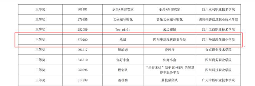 近日,第十二届全国大学生电子商务“创新、创意及创业”挑战赛四川赛区省级选拔赛获奖名单公布,我院电商学院学生组成的“承新”队,经过激烈的角逐,荣获三等奖。