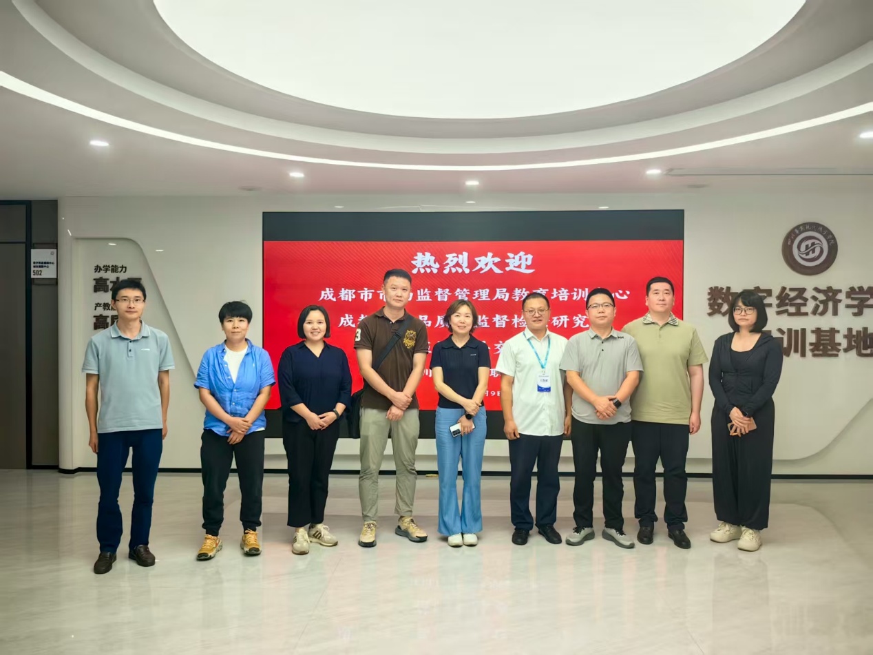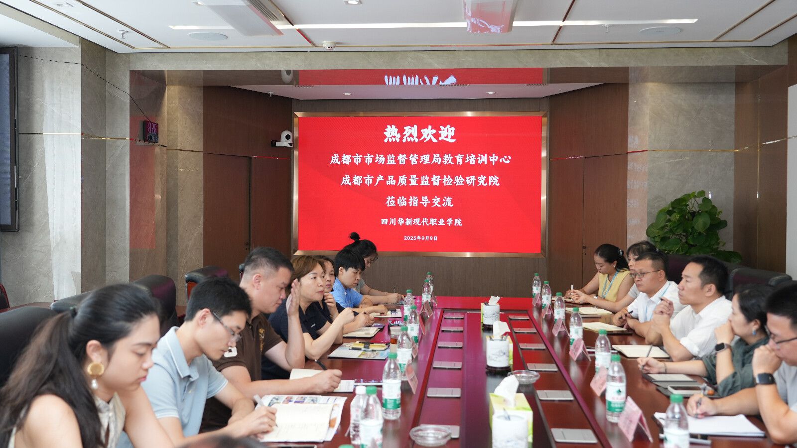 2025年9月9日,成都市市场监督管理局教育培训中心、成都市产品质量监督检验研究院一行莅临四川华新现代职业学院,开展交流活动并实地调研数字经济学院实训中心。此次访问旨在进一步推动校地协同发展,深化直播电商行业人才培养与标准建设,共同助力区域数字经济健康、规范、创新发展。