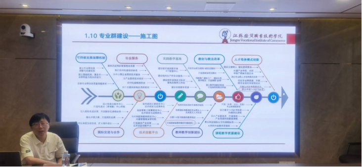 吴洪贵教授分享了江苏经贸职业技术学院、南京城市职业学院、盐城职业技术学院的电子商务双高专业群建设经验,并就我院电子商务专业群及实训基地建设方案进行了深入剖析,高标准严要求,问诊把脉,提出具体的规划建议,并就教学资源库建设和数字化教材建设提供了参考性建议。