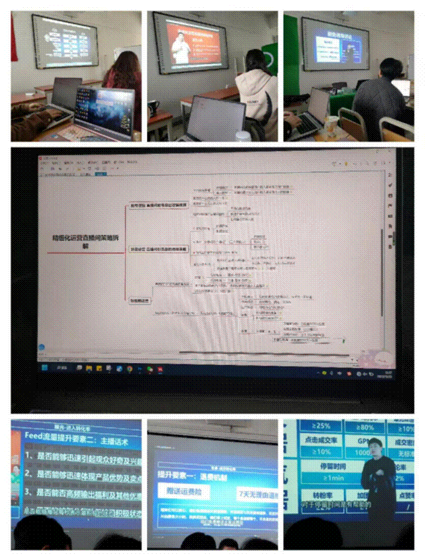 118日至1110每天上午学习直播课程,如精细化运营直播间策略拆解、流量提升要素等内容,实训教师随时关注同学们的学习进度和学习状态。下午13:00-17:00、晚上18:00-20:30试播,试播结束后每晚进行复盘。