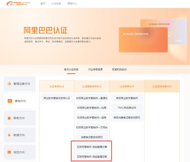 我院电子商务学院与阿里巴巴中小企业商学院合作,利用阿里巴巴电子商务培训体系对学生进行互联网营销师-淘宝直播主播、淘宝直播运营高级专员的培训、考核并颁发认证证书。