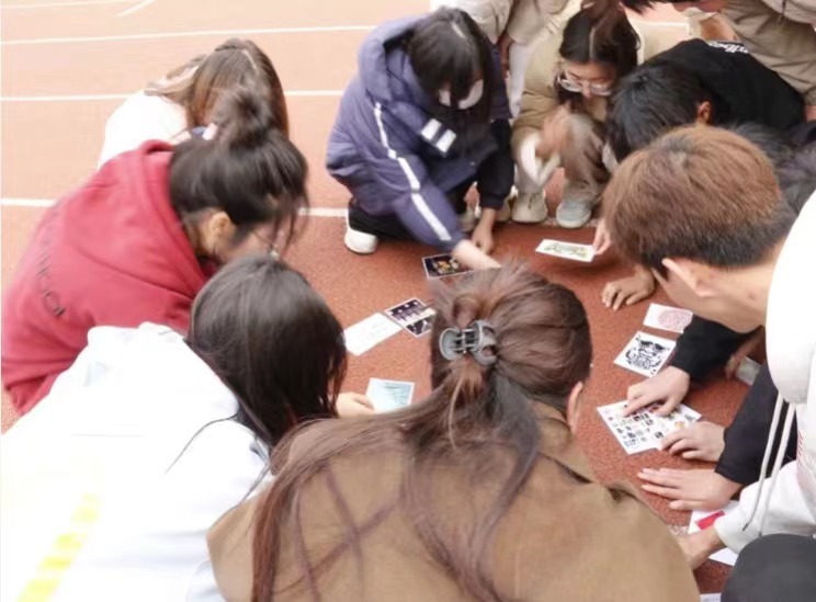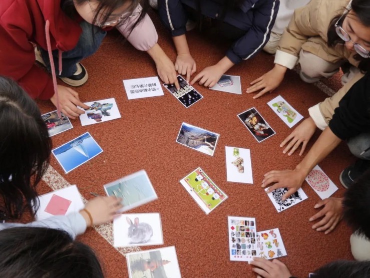 我们看到同学们相互揉肩,原来是活动开展前的放松方式,这别样的热身方式拉近了同学们的距离。