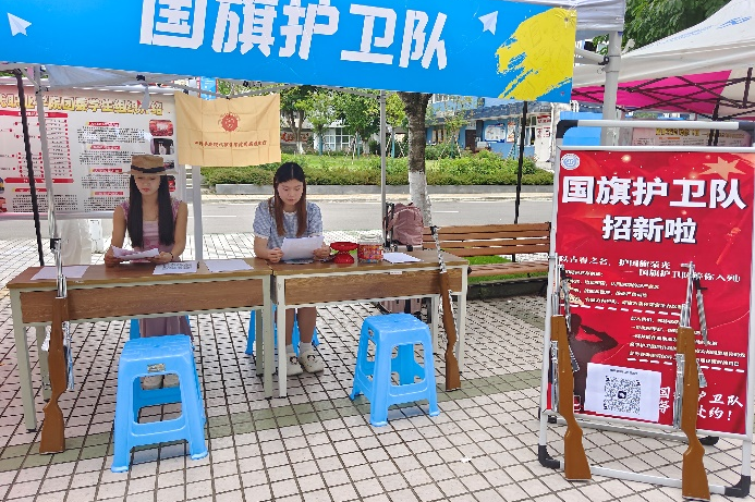 招新活动现场,各学生组织干部精心筹备,布置展位整齐有序,宣传资料内容丰富精彩。七大组织各展所长,呈现出百花齐放的生动局面。学生会以其完善的组织架构和丰富的活动体系,为新生提供组织、锻炼、协调能力和创新实践能力的平台;青年志愿者协会通过志愿服务项目,培养学生的社会责任感和奉献精神;团委会注重思想引领,开展主题教育实践活动,提升团员青年的政治素养;国旗班以其独特的庄严与青春相融合的气质,为心怀热忱的新生提供了守护国旗、锤炼品格、展现青春风采的宝贵平台;新媒体运营中心依托网络平台,为学生提供创意策划和内容生产的实践机会;艺术团通过专业的艺术培训和演出实践,提升学生的审美素养和艺术表现力;大学生自治管理委员会则注重培养学生的自我管理能力,参与校园民主建设。