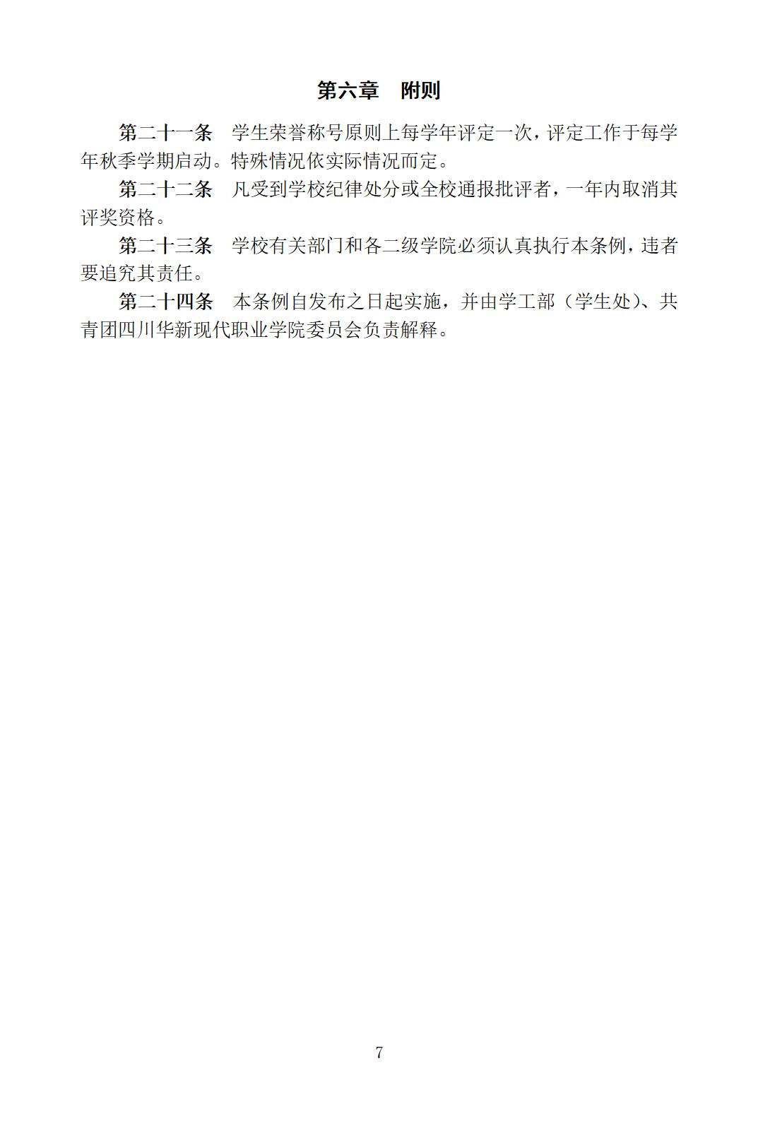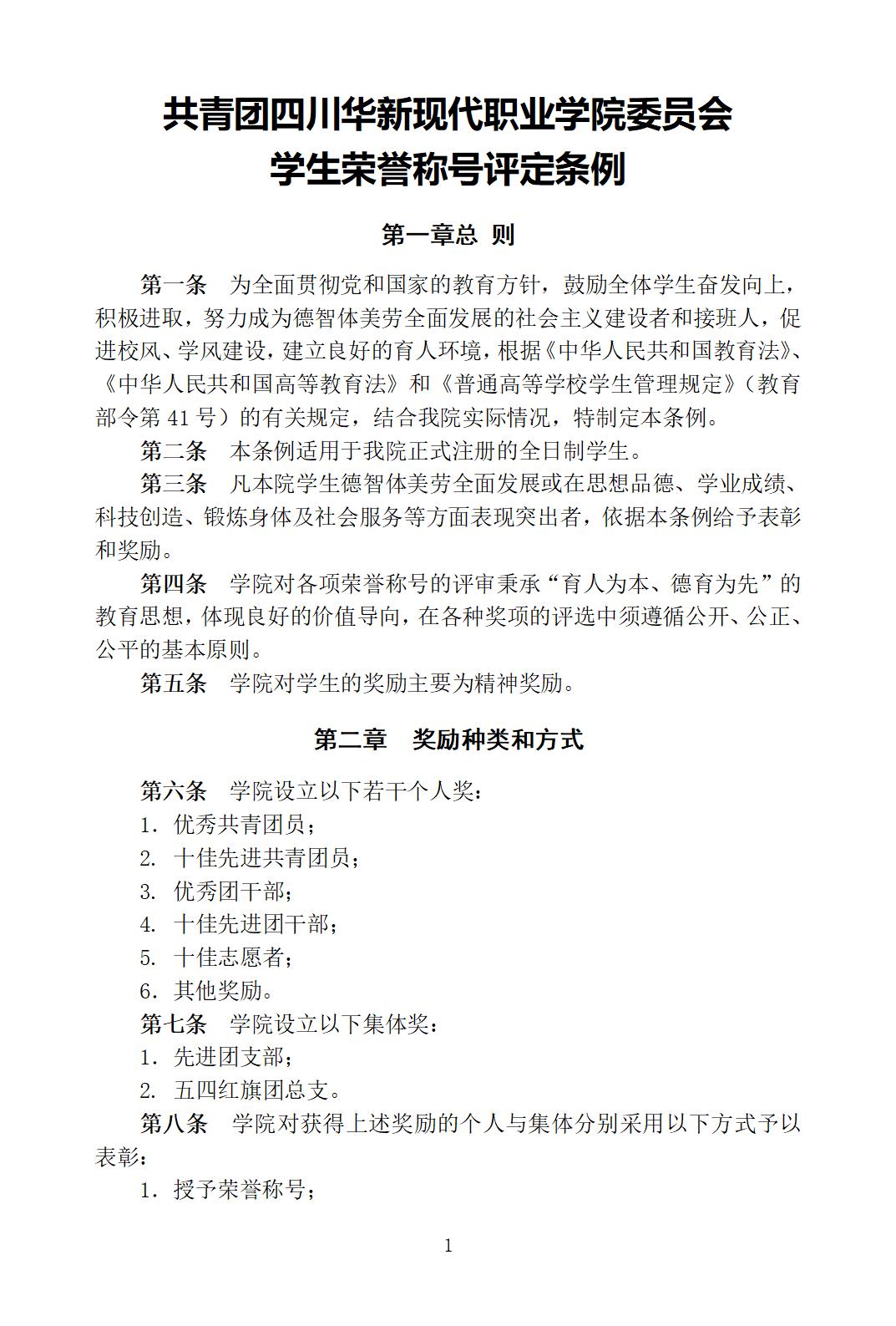 共青团四川华新现代职业学院委员会 学生荣誉称号评定条例