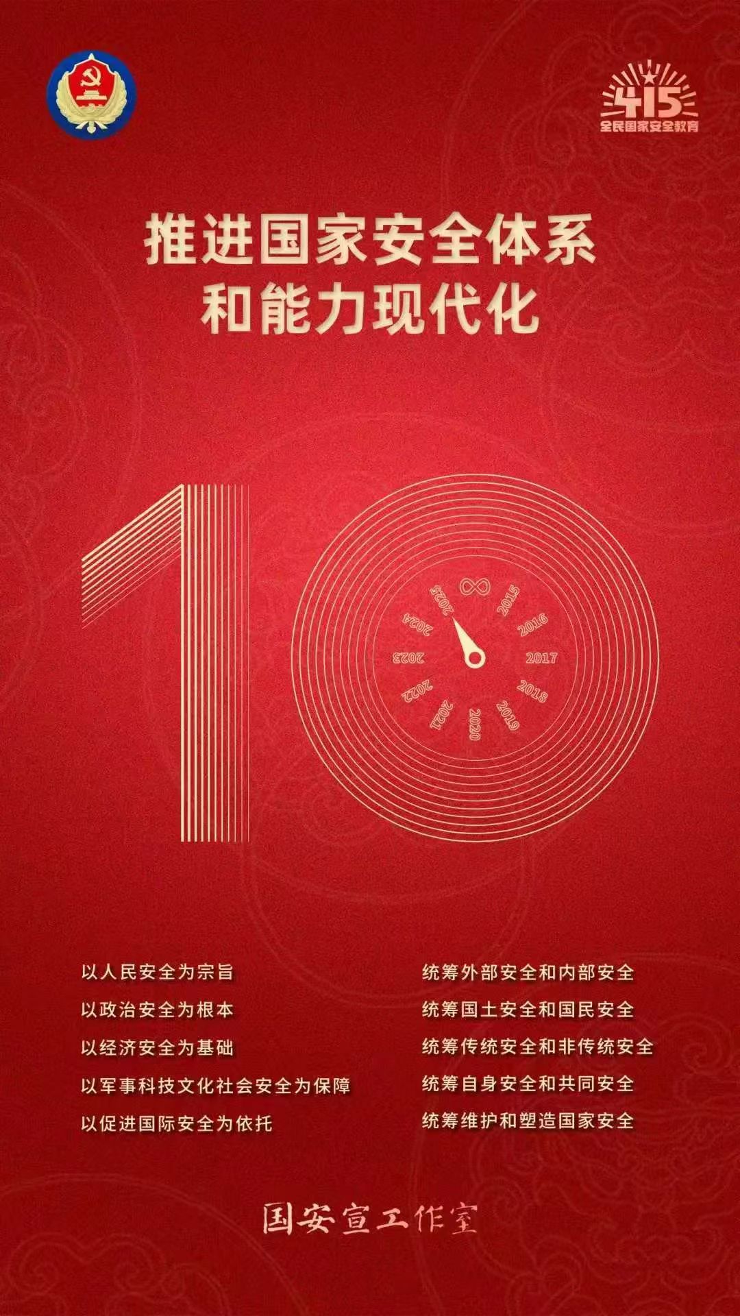 2025年4月15日是第十个全民国家安全教育日,为深入贯彻落实习近平总书记关于加强国家安全教育的重要批示精神,现将“全民国家安全教育 走深走实十周年”系列海报呈现,强调要坚定不移贯彻总体国家安全观,推进国家安全体系和能力现代化,完善国家安全法治体系,提升国家安全工作法治水平。同学们,快来了解海报要点,提升自己国家安全意识!