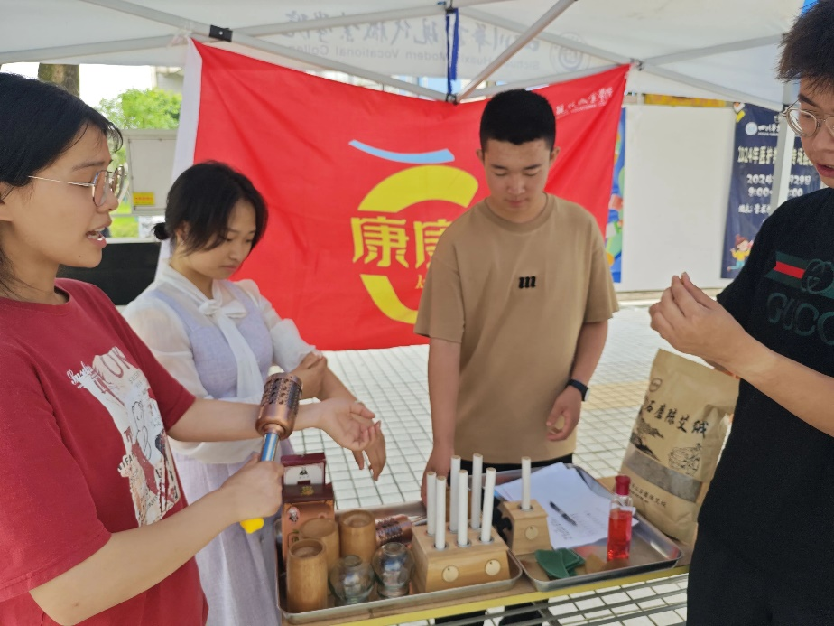 2024年6月6日11:00至14:00,四川华新现代职业学院康复治疗技术“康康侠”社团,由指导老师杨立军老师带领社团社员在二号食堂门口开展“遇见中医之美”中华传统文化知识推广活动。