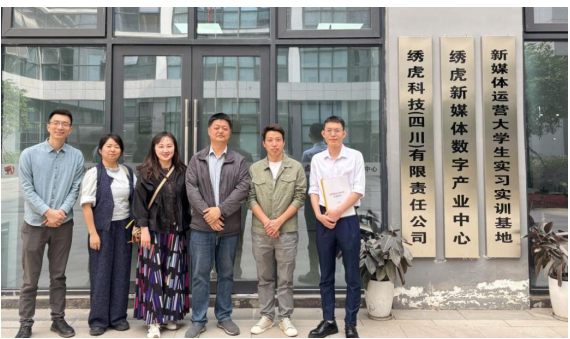 2025年4月28日,四川华新现代职业学院招生就业处副处长唐菲,计算机与大数据学院党支部书记万绪林、副院长邓先春、数字媒体技术专业负责人袁娜一行赴成都绣虎新媒体数字产业中心开展访企拓岗专项行动,实地调研企业用人需求,深化产教融合,为毕业生高质量就业开拓新渠道。