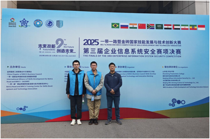 11月1日,2025一带一路暨金砖国家技能发展与技术创新大赛“企业信息系统安全赛项”全国决赛在山东理工职业学院结束。计算机与大数据学院参赛队伍凭借扎实的专业技能和出色的临场发挥,最终斩获全国三等奖。