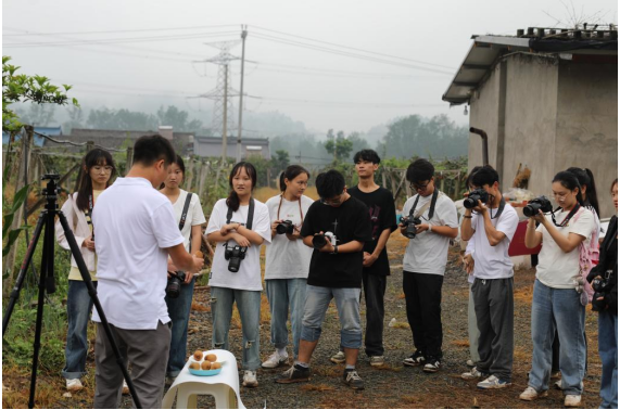 随后,在专业教师的指导下,学生们迅速进入工作状态,从脚本策划、镜头设计到实地拍摄,每一个环节都力求精益求精。他们利用无人机航拍捕捉猕猴桃园的景色,运用手持稳定器捕捉猕猴桃从枝头到篮中的每一个细节,同时,还采访了种植户蒋师傅,讲述他返乡创业的故事,传递产品的背后价值和情感温度。