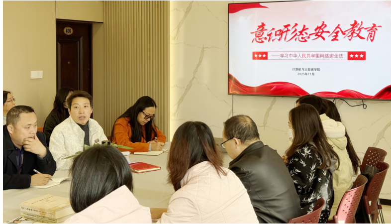 为强化支部党员的意识形态安全意识,提升网络安全素养,营造健康、安全的网络环境贡献力量,11月19日,计算机与大数据学院党支部开展了“意识形态专题学习教育”活动。学院全体教师参加了此次学习,共同学习探讨网络安全相关重要内容。