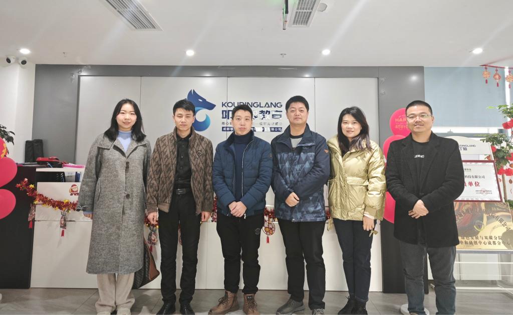 在成都叩丁狼教育有限公司,万绪林书记首先看望了正在参加冬令营实训的多名学生,与大家亲切交流,询问同学们实训学习情况,关心日常生活中遇到的困难和问题等。公司负责人李敏、市场部经理龙开国对我院领导、教师的走访表示热烈的欢迎,充分肯定了同学们的表现,并就未来职业教育与成人教育人才培养、共建协同创新平台等方面做了深入交流。