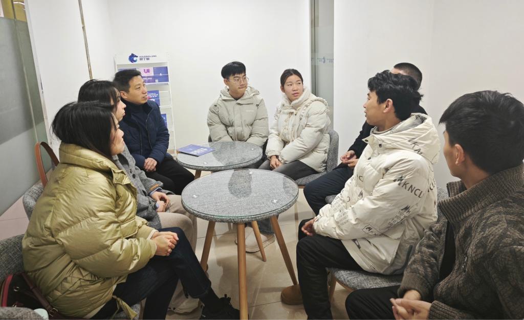 为深入了解计算机与大数据学院学生参加冬令营实训期间的思想动态、学习进程与生活情况。也为推动访企拓岗工作,了解行业用人需求,推动专业建设。1月12日,学院党支部书记万绪林、副院长邓先春、计算机应用技术专业负责人陈桂芳、四川开大工程技术学院教师申晓青一行来到崇州大数据基地,走访了成都叩丁狼教育有限公司、四川合丰运维科技有限公司、四川诚学信付有限公司等企业。