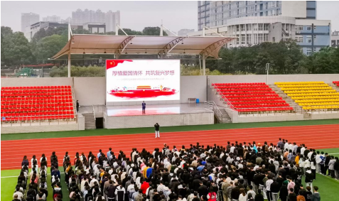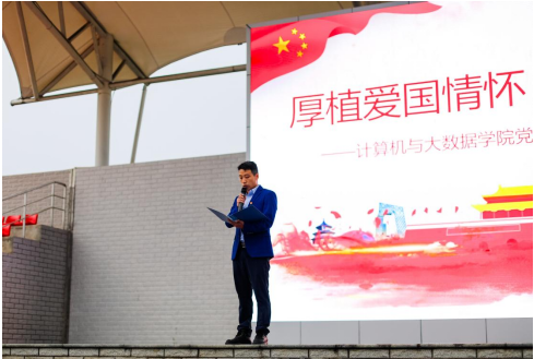 升旗仪式后,计算机与大数据学院党支部副书记万绪林为全体师生作了一堂“厚植爱国情怀,共筑复兴梦想”的主题党课。从74年前的10月,中国第一面五星红旗在天安门城楼升起到祖国走向强大,中国所取得的成就都是祖辈和先烈们用生命和鲜血换来的,他对师生提出三点期望:坚定理想信念,树立远大目标;培养良好习惯,营造良好风气;坚持热爱自己,勇于追逐梦想。万绪林希望广大师生厚植爱国情怀,从身边小事做起,努力工作、勤奋学习,用良好的习惯,健康的身体和优异的成绩为祖国建设和民族复兴做出自己的贡献。