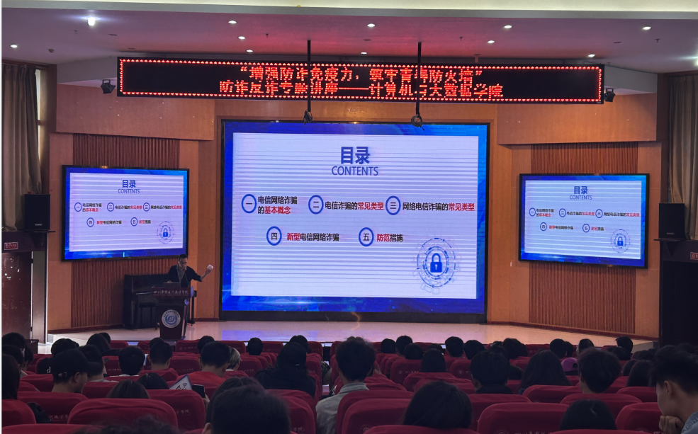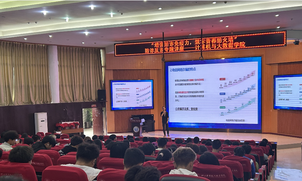 为了提升师生的反诈意识,保障师生的财产、身心安全,2023年10月20日下午13点30,计算机与大数据学院邀请了四川开放大学林亮亮副教授在学术报告厅“做了“增强防诈免疫力,筑牢青春防火墙”反诈主题讲座。