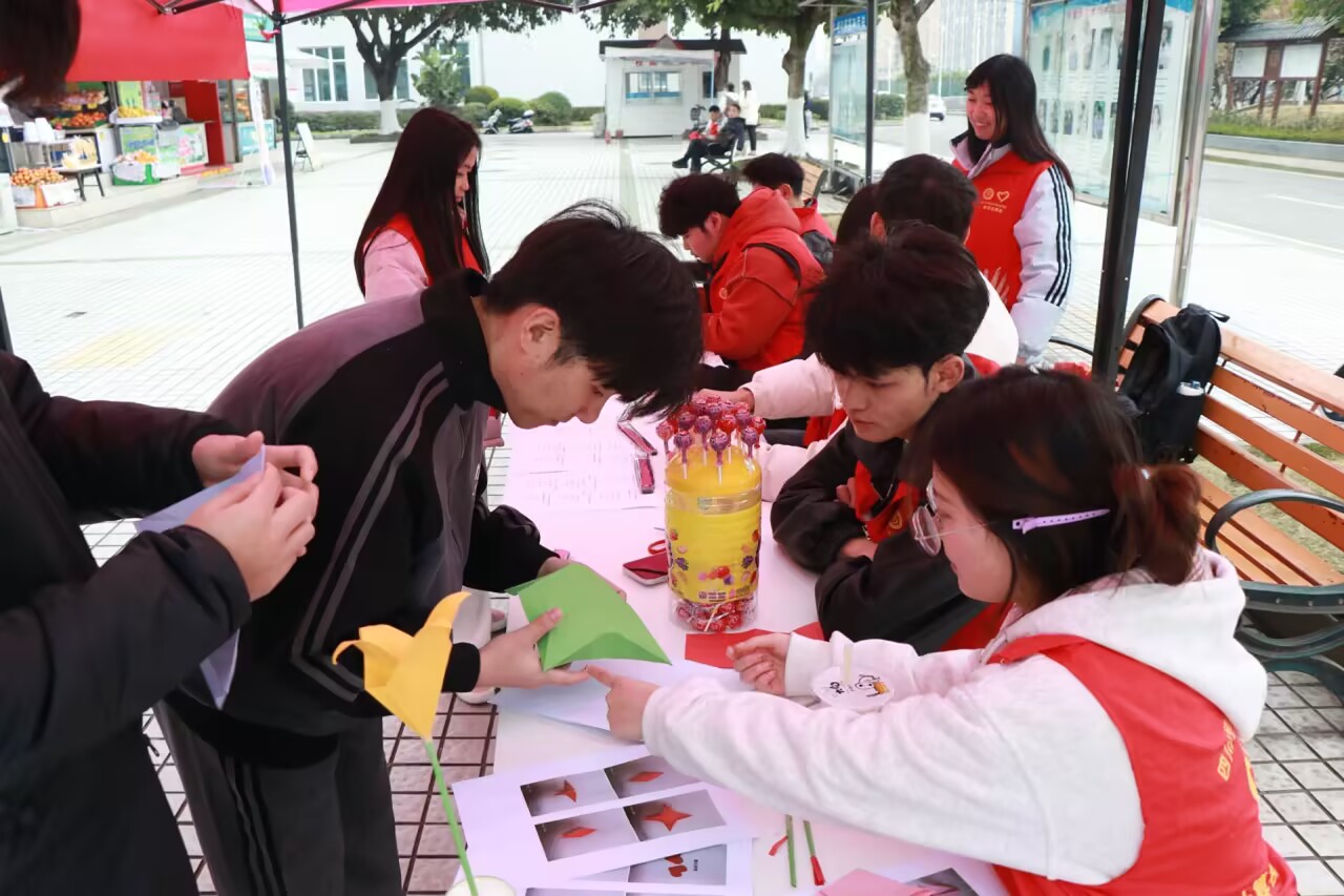 活动当天,校园内春意盎然,到处洋溢着节日的喜庆。在学校知味园前的广场上,由学生会精心布置的活动摊位格外引人注目。摊位前,一条条关于妇女权益的趣味问题放在百宝箱里,等待着同学们前来挑战。这些问题涵盖了国际妇女节的历史、女性在各领域取得的成就、以及日常生活中女性可能遇到的权益问题等,旨在通过轻松愉快的方式,让参与者在游戏中学习到相关知识。