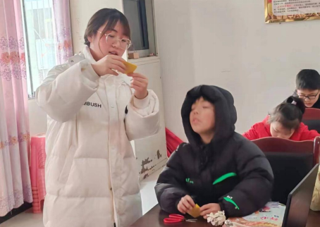 刘妍,计算机与大数据学院团支部副书记,她的家乡万源市长坝镇教育资源紧缺,她所在的胡家坪村约有2000余人,青壮年普遍常年在外打工,孩子则留在家里上学,由祖辈照顾。2023年12月,还在学校学习的刘妍通过“万源共青团”公众号看到了“返家乡”社会实践活动,她第一时间通过网络报名,决心在家乡万源市长坝镇开展留守儿童作业辅导的社会实践活动。