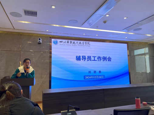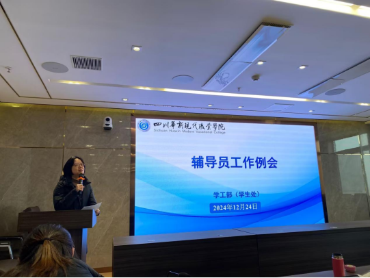 12月24日下午,学工部在明德楼602会议室召开辅导员工作例会。会议由学工部副部长彭娟主持,学院党委副书记李瑜出席,学工部部长任燕、心理健康教育中心副主任陈蒂丝、学工部副部长任勇军、团委副书记伍凤姣、各二级学院书记副书记、全体辅导员参加会议。