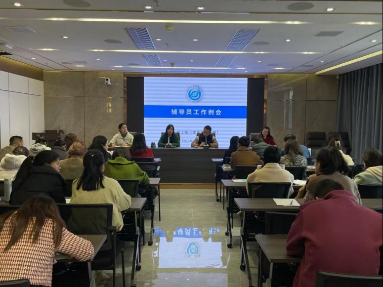 11月28日下午,学工部在明德楼新会议室召开辅导员工作例会。会议由学工部部长任燕主持,学院党委副书记李瑜出席,学工部副部长伍凤姣、团委副书记金园、各二级学院书记副书记和全体辅导员参加会议。