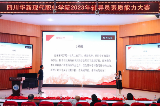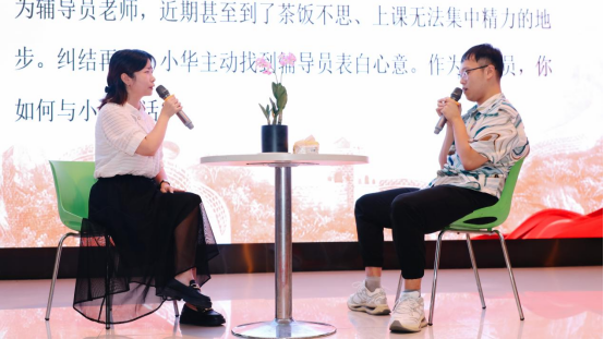 决赛包括案例研讨和谈心谈话两个环节。案例研讨环节以“我提问,你回答”的方式开展,由AB选手围绕案例共同辨析原因、研讨对策、总结规律,充分体现了辅导员老师们思维分析、随机应变和临场把握能力。谈心谈话环节,参赛选手根据题目要求,以情景再现的方式开展谈心谈话。比赛中,参赛辅导员充分挖掘来访学生的问题本质,精准把握关键信息,提出了诸多清晰的解决思路和切实可行的实施办法,切实为学生工作提供了清晰的思路与动力。