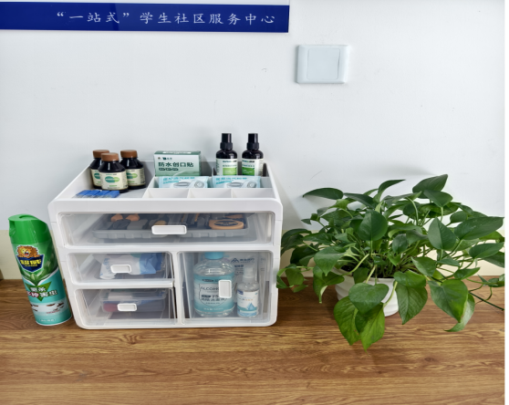 现在每栋宿舍设立“新心驿站”,为同学们提供日常所需针线包、缝补服务;应急医药包:碘伏、酒精、温度计、创口贴、棉签、医用纱布等;简单维修工具:螺丝刀、卷尺等;消毒用品:84消毒液、杀虫剂等。