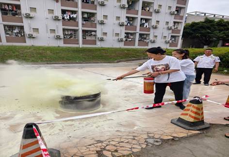 在实操环节,宿管老师分组进行干粉灭火器灭火、消火栓出水控火演练。面对模拟火情,宿管老师们沉着提灭火器奔赴“火场”,对准火焰根部精准喷射;消火栓组配合铺设水带、开启阀门,水流迅速覆盖“着火点”。