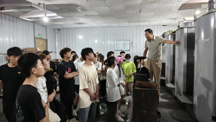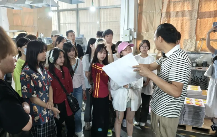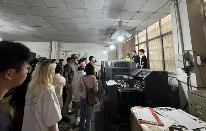 从设计稿的校对到印版的制作,再到油墨的调配与上机印刷,每一个步骤都凝聚着印刷人的智慧与汗水。学习过程中,学生深入了解了印刷技术的发展历程和现状,及未来印刷行业的趋势与前景。同学们认真观察工厂生产的成品及半成品,学习其中切割方式、工艺等。同学们纷纷表示,这次观摩学习不仅让他们对印刷工艺有了更为直观和深刻的认识,也对广告艺术设计专业有了更加广阔的视野和更加深厚的理解。