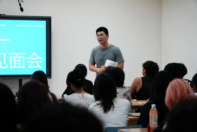 广告艺术设计专业见面会上,首先由专业负责人宋亚明代表广告专业的全体教师,向同学们表示最热烈的欢迎,并向新生详细阐述了专业核心课程体系、师资力量及实践平台等关键信息,让同学们对专业有了初步而全面的认识。专业学科带头人四川音乐学院成都美术学院副院长、视觉传达设计系主任周靖明教授示范鼓励同学们尝试滑板平衡和俯卧撑的方式告诉大家“熟能生巧”,特别强调职业教育是一个强化练习,学会工作的过程,希望同学们在三年的大学生活里热爱生活,认真学习,以梦为马,不负韶华,成就更好的自己。