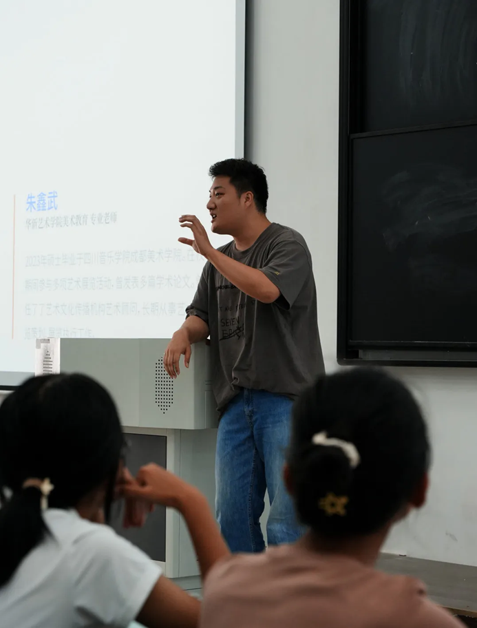 美术教育专业学科带头人四川音乐学院成都美术学院党委书记贺阳教授以视频的形式向新生表示欢迎,也给大家送上了四点建议:一、放下过往、展望未来;二、珍惜时间、切莫荒废;三、锁定目标、量化分解;四、相互激励、共同进步。表达了对大一新生的美好祝愿和殷切期盼,鼓励同学们及早规划、厚积薄发。随后,专业学科负责人阳凤老师向2024级新同学介绍了本专业的基本情况,同时详细解读了美术教育专业的课程设置、教学特色以及未来发展方向,希望同学们在未来的学习生活中努力做到先完成、再完美。美术教育专业的全体教师将全力以赴,为新生提供最优质的教育资源、最广阔的实践平台,助力他们成长为具有创新精神和实践能力的复合型人才。