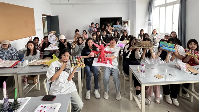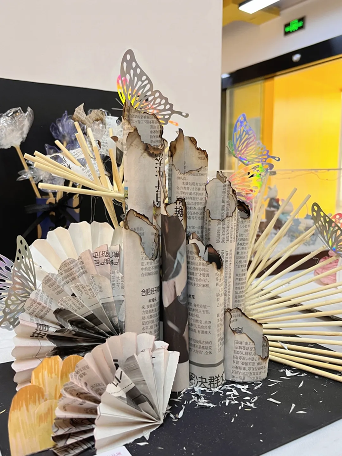 本次2023级美术教育专业学生综合材料展示活动充分展现了学生们丰富多彩的学习成果和个人风采。在展示过程中,我们看到了学生们在本次课程的优异表现,包括精美的作业和富有创意的项目成品,体现了他们扎实的知识基础和创新思维能力。将绘画、衍纸、石塑黏土、玻璃、树枝、塑料瓶等材料综合利用,找到材质的艺术属性和特征,展现了他们的创造力,也让我们感受到了艺术的魅力和学生们对美的追求。