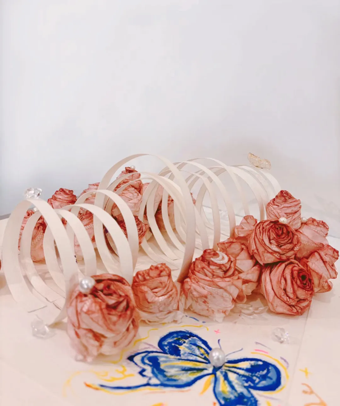 用柔软的纸张来做玫瑰花更能体现花的特征,一朵朵玫瑰拥簇向上生长代表人们对未来美好的期盼,绽放的花朵代表希望和祝福体现一种深情浪漫的感觉。