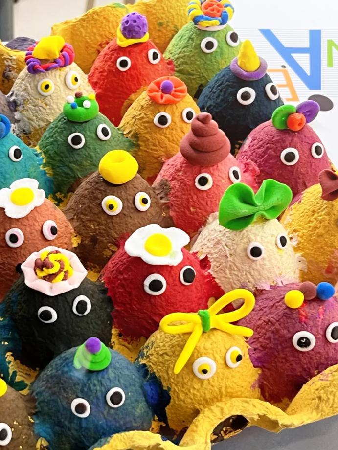 我们组用废弃的鸡蛋托制作了一个可可爱爱的装饰品。手工需要花费很长时间,从无到有的过程,沉浸在每一次的创作中,感受那份独特的成就感。