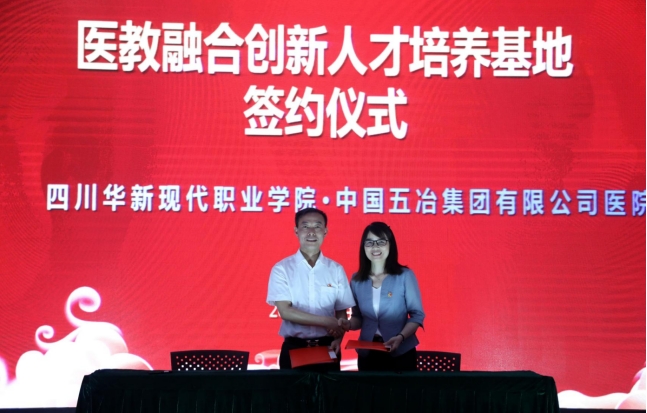 为深入贯彻全国教育大会精神,落实《国家职业教育改革实施方案》,贯彻以习近平新时代中国特色社会主义思想为指导,全面贯彻党的教育方针,落实立德树人根本任务,深化产教融合、校企合作,健全德技并修、工学结合的育人机制和多方参与的质量评价机制,深入推进教师、教材、教法改革,根据《教育部办公厅关于全面推进现代学徒制工作的通知》(教职成厅〔2019〕)12号)文件精神,四川华新现代职业学院与中国五冶集团有限公司医院,决定建立“医教融合创新人才培养基地”。双方将共同合力推进护理专业、康复治疗技术专业实用型人才培养工作,加强学校的临床教学力量,改善临床教学条件,同时促进医院临床教学和康复技术、护理业务工作,推动医院医疗、教学、科研工作的全面发展,本着长期合作、互惠互利、共谋发展的宗旨,创新性开展医教融合人才培养。