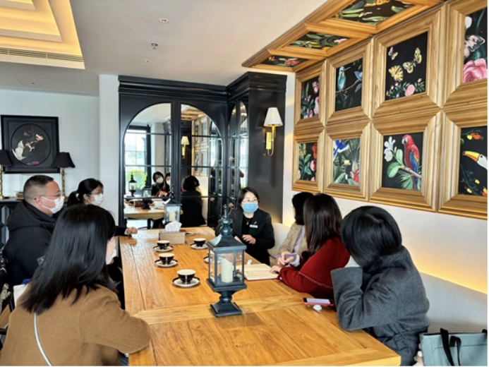 图三 与爱悦月子中心接待负责人进行交流座谈