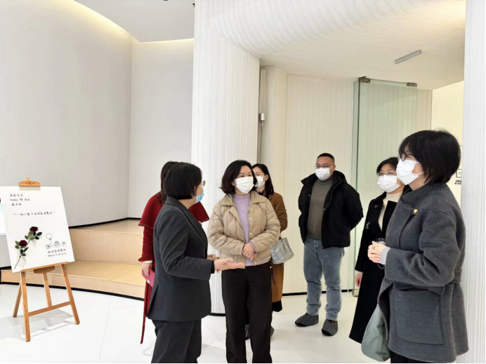 随后,一行抵达爱悦月子中心后,在业务部经理李丹女士的带领下,一行人参观了温馨舒适的产后休养室、设施齐全的产后康复区以及科学规范的新生儿护理室。