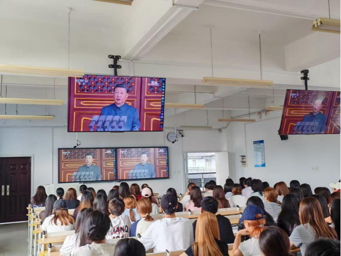 ——医护康养学院组织师生集中观看纪念中国人民抗日战争暨世界反法西斯战争胜利80周年大会