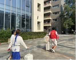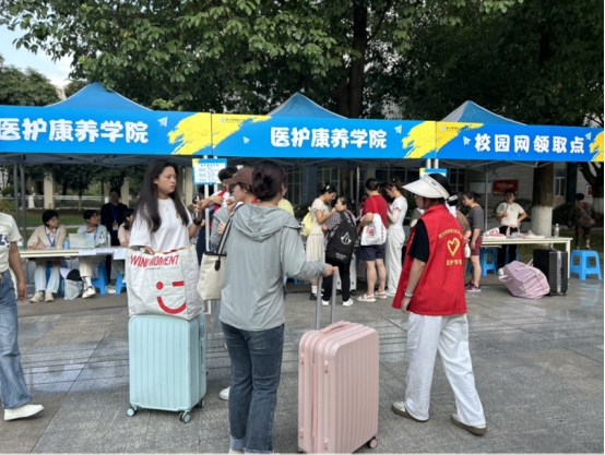 清晨的第一缕阳光洒落在校园的林荫道上,医护康养学院团总支、学生会以及志愿者们以饱满的热情和真挚的笑容,早早地在各个迎新站点等候着新生们的到来。他们不仅是校园的指引者,更是新同学们初入大学校园时的温暖依靠,用实际行动诠释了“奉献、友爱、互助、进步”的志愿精神。