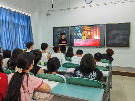 包智涵同学以新中国成立后,特别是改革开放以来,中国取得的显著发展成就进行宣传介绍,让同学们深刻体会这些成就的取得,是中国共产党领导下的中国人民共同奋斗的结果,是中国特色社会主义道路的成功实践。使同学们感到生活在这样的时代而带来的自豪,同时也深感责任重大,要继续为实现中华民族伟大复兴的中国梦而努力奋斗。