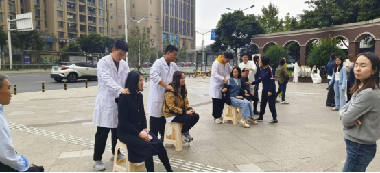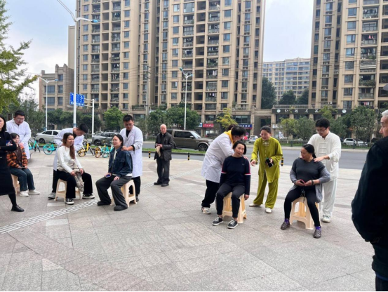 除了八段锦展示,康康侠社团还带来了推拿手法体验。来康康侠社团的专业推拿师们用他们精湛的技艺,为社区居民们提供了贴心的服务。他们耐心细致地讲解推拿技巧,让居民们在享受舒适的同时,也学到了实用的养生知识。这一环节不仅让居民们感受到了中医推拿的魅力,更激发了他们对健康生活的向往与追求。