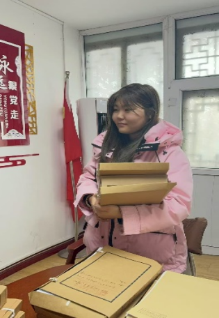 初到老干部局,王秀竹同学显得有些青涩与紧张。但在老干部局张老师的热情接待和细心指导下,她很快适应了新的工作环境,并与同事们建立了良好的关系。从整理档案、完成电子归档,到给档案盖章、分发档案,王秀竹同学以认真负责的态度,迅速掌握了这些基础工作的要领。