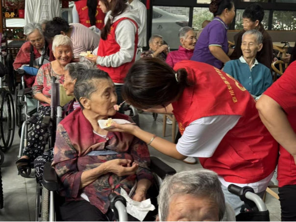 不是简单递上蛋糕,而是提前把大块切成小口,方便老人咀嚼;喂的时候放轻动作,避免食物沾到衣服。